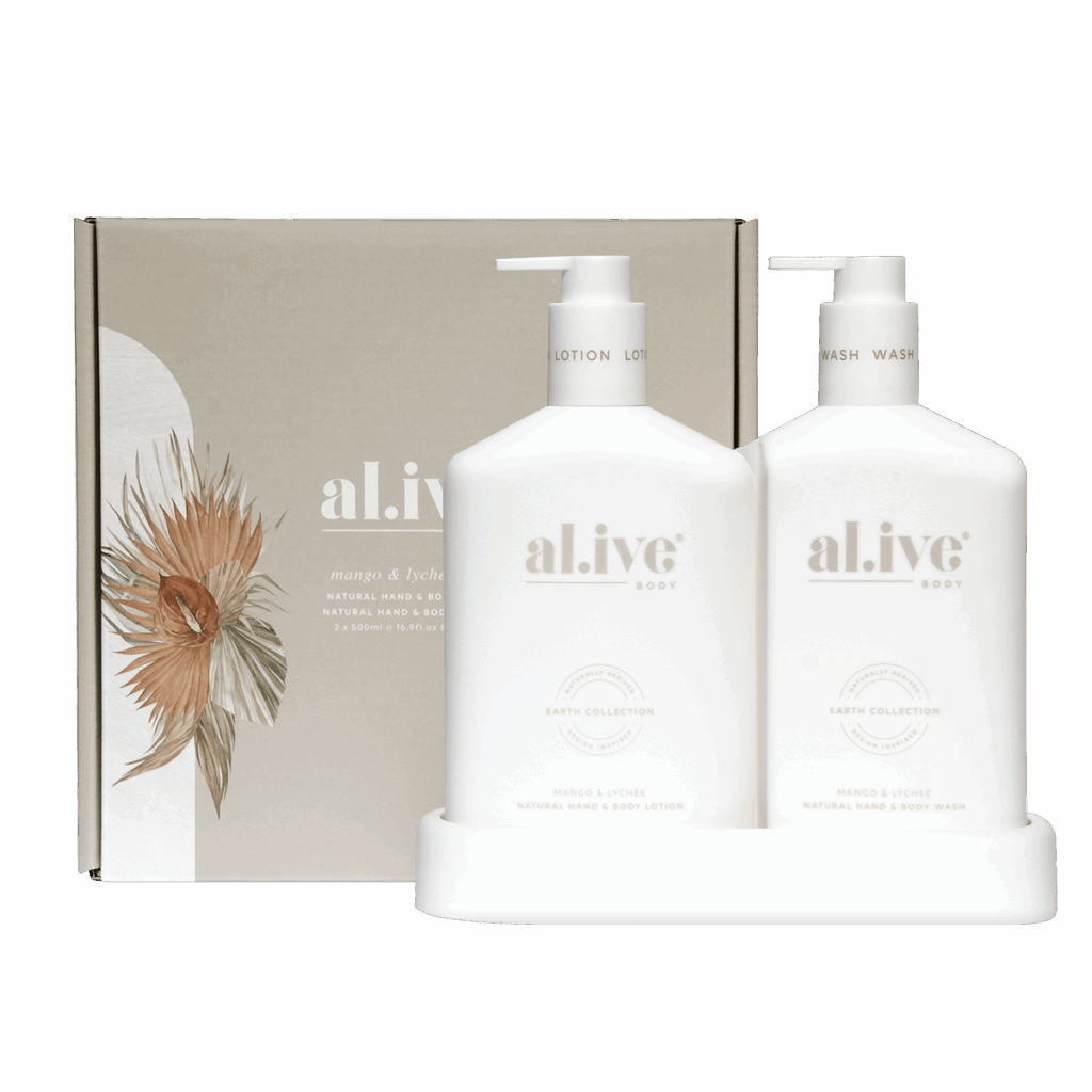 The al.ive body Wash & Lotion Duo in Mango & Lychee contains a luxurious blend of naturally derived ingredients, fortified with essential oils and native botanical extracts.