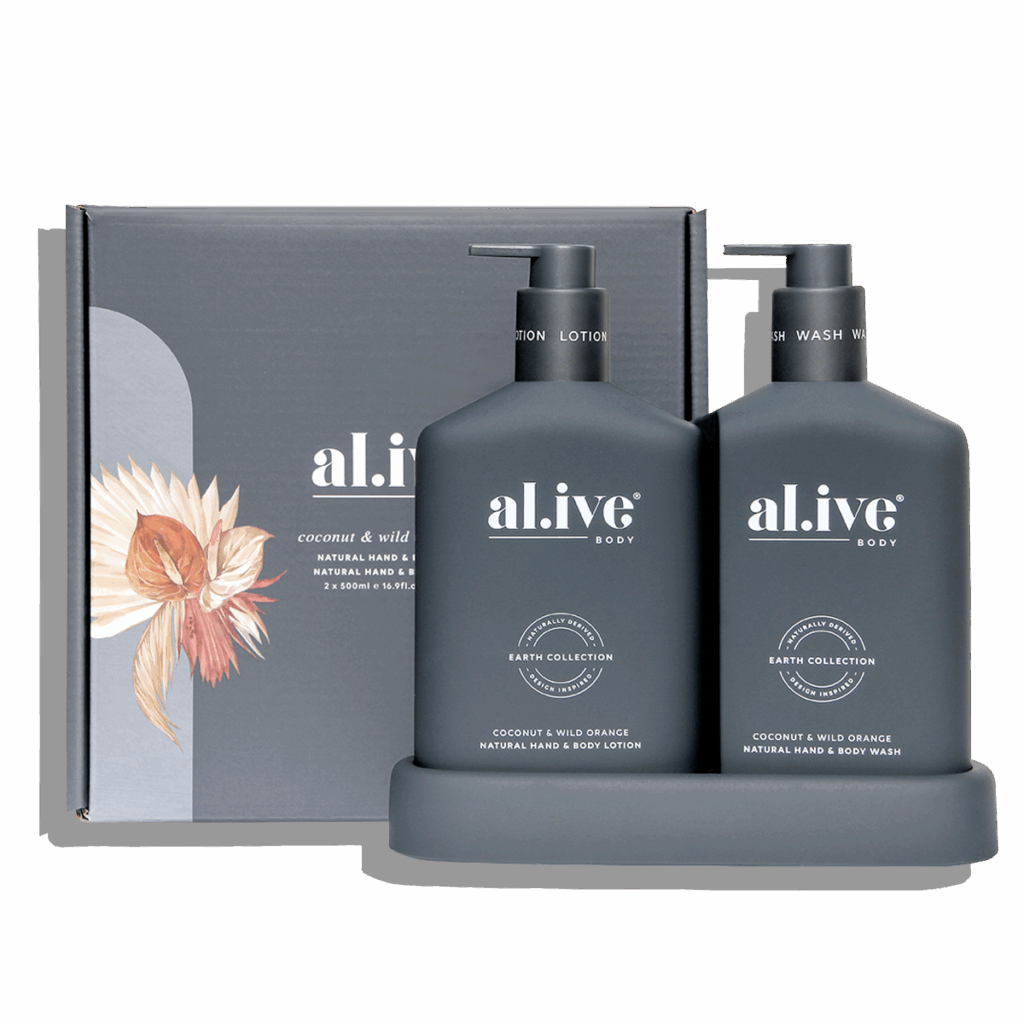 The al.ive body Wash & Lotion Duo in Coconut & Wild Orange contains a luxurious blend of naturally derived ingredients, fortified with essential oils and native botanical extracts.