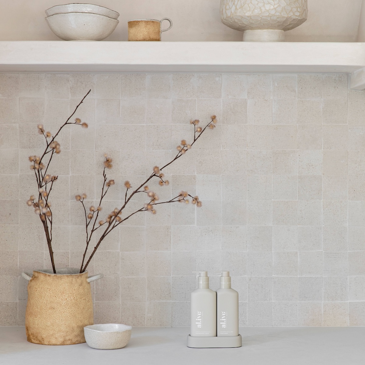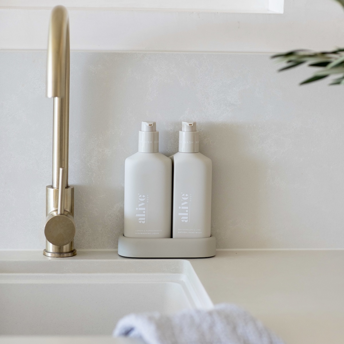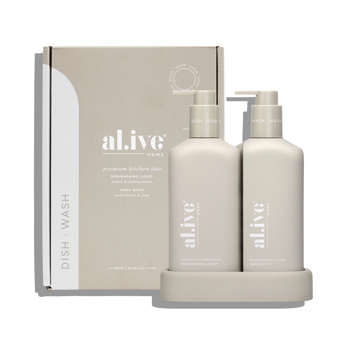 al.ive Kitchen Duo – Lemon Pomergranate + Watermelon & Lime$66.00 (inc. GST) al.ive body Kitchen Duo – Lemon Pomergranate + Watermelon & Lime - al.ive Kitchen Duo - Lemon Pomergranate + Watermelon & Lime quantity + Add to cart SKU: SKU67901 Category: al.ive Description Description The al.ive body Hand Wash & Dishwashing Liquid Premium Kitchen Duo is a beautiful yet practical product, elegantly packaged to elevate your countertop. This Duo includes a 300ml Lemon & Pomegranate Dishwashing Liquid, a 300ml Watermelon & Lime Hand Wash and a matching custom tray. This hardworking Dishwashing Liquid uses naturally-derived ingredients to dissolve even the toughest residues, whilst being gentle on skin. 1-2 pumps is all that is needed to clean a sink full of dishes, the premium formula working hard to shift stubborn grease and grime. Care for your hardworking hands with this nourishing and gently cleansing Hand Wash. Featuring botanical oils, this formula whisks away dirt and impurities whilst imparting skin with light moisture. The slim design and more compact size allows for convenient display and kitchen use. Additional information Additional information Weight 0.96 kg Dimensions 17.2 × 7.5 × 22.5 cm Related products al.ive Wash and Lotion Duo- Coconut & Wild Orange $89.00 (inc. GST) Add To Cart al.ive Wash and Lotion Duo- Apricot & Sweet Fig $89.00 (inc. GST) Add To Cart al.ive Wash and Lotion Duo-Mango & Lychee $89.00 (inc. GST) Add To Cart al.ive Wash and Lotion Duo- Green Pepper & Lotus $89.00 (inc. GST) Add To Cart