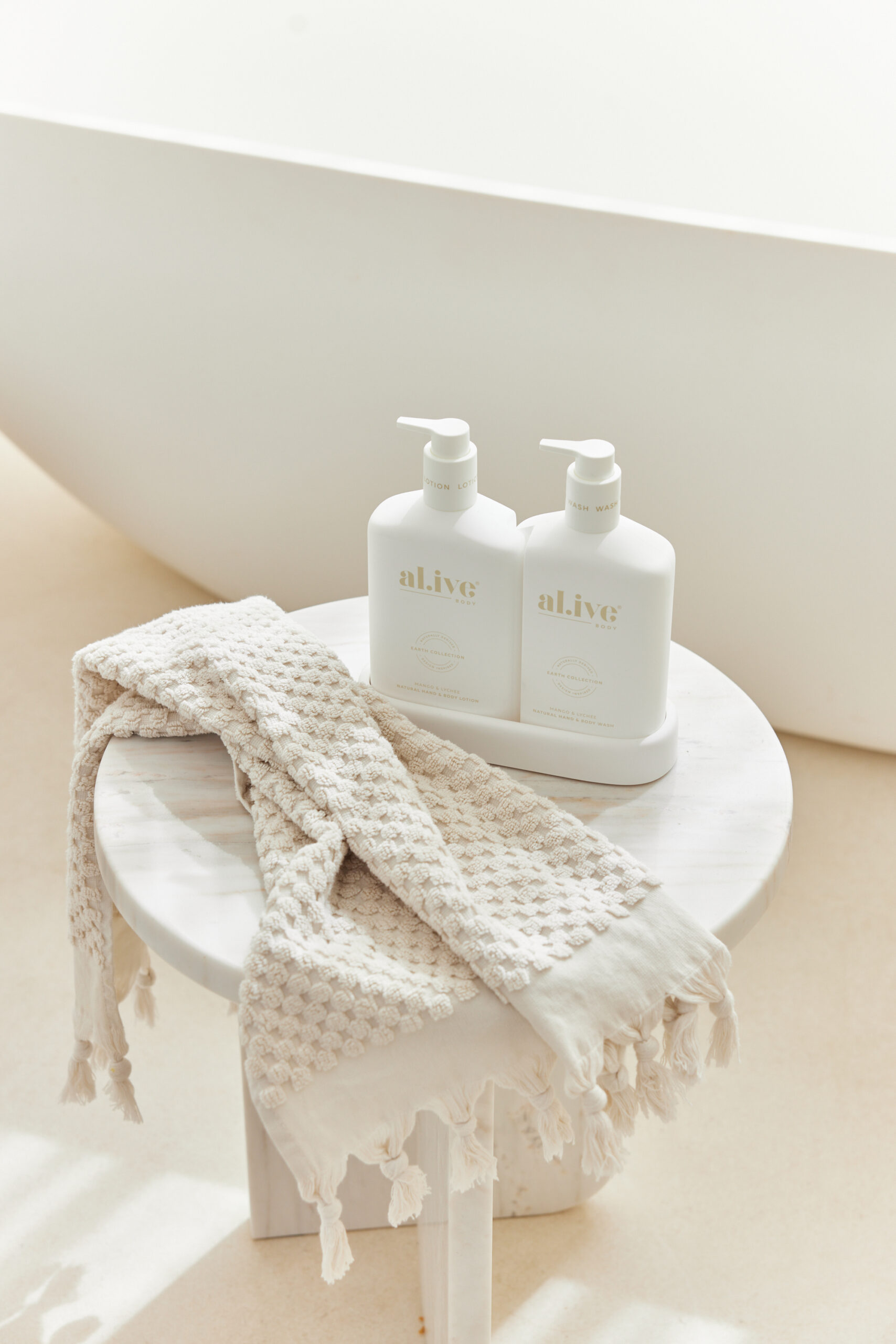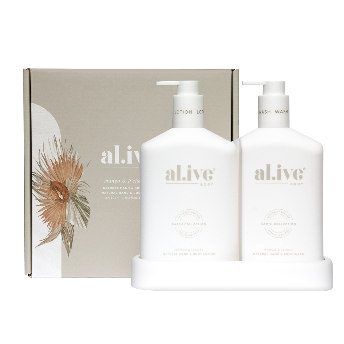 al.ive Wash and Lotion Duo-Mango & Lychee$89.00 (inc. GST) al.ive body Wash & Lotion Duo in Mango & Lychee - al.ive Wash and Lotion Duo-Mango & Lychee quantity + Add to cart SKU: SKU67891 Category: al.ive Description Description The al.ive body Wash & Lotion Duo in Mango & Lychee contains a luxurious blend of naturally derived ingredients, fortified with essential oils and native botanical extracts. This set includes a 500ml Hand & Body Wash, 500ml Hand & Body Lotion and a matching tray With its illuminated white tone and matte finish, it brings a grounded sophistication to your bathroom or kitchen. The al.ive body Australian made hand & body range combines product purity with designer aesthetics to stimulate your senses and shape your surroundings. Additional information Additional information Weight 1.3 kg Dimensions 21.5 × 7.5 × 21.5 cm Related products al.ive Kitchen Duo – Lemon Pomergranate + Watermelon & Lime $66.00 (inc. GST) Add To Cart al.ive Wash and Lotion Duo- Coconut & Wild Orange $89.00 (inc. GST) Add To Cart al.ive Wash and Lotion Duo- Sea Cotton & Coconut $89.00 (inc. GST) Add To Cart al.ive Wash and Lotion Duo- Green Pepper & Lotus $89.00 (inc. GST) Add To Cart